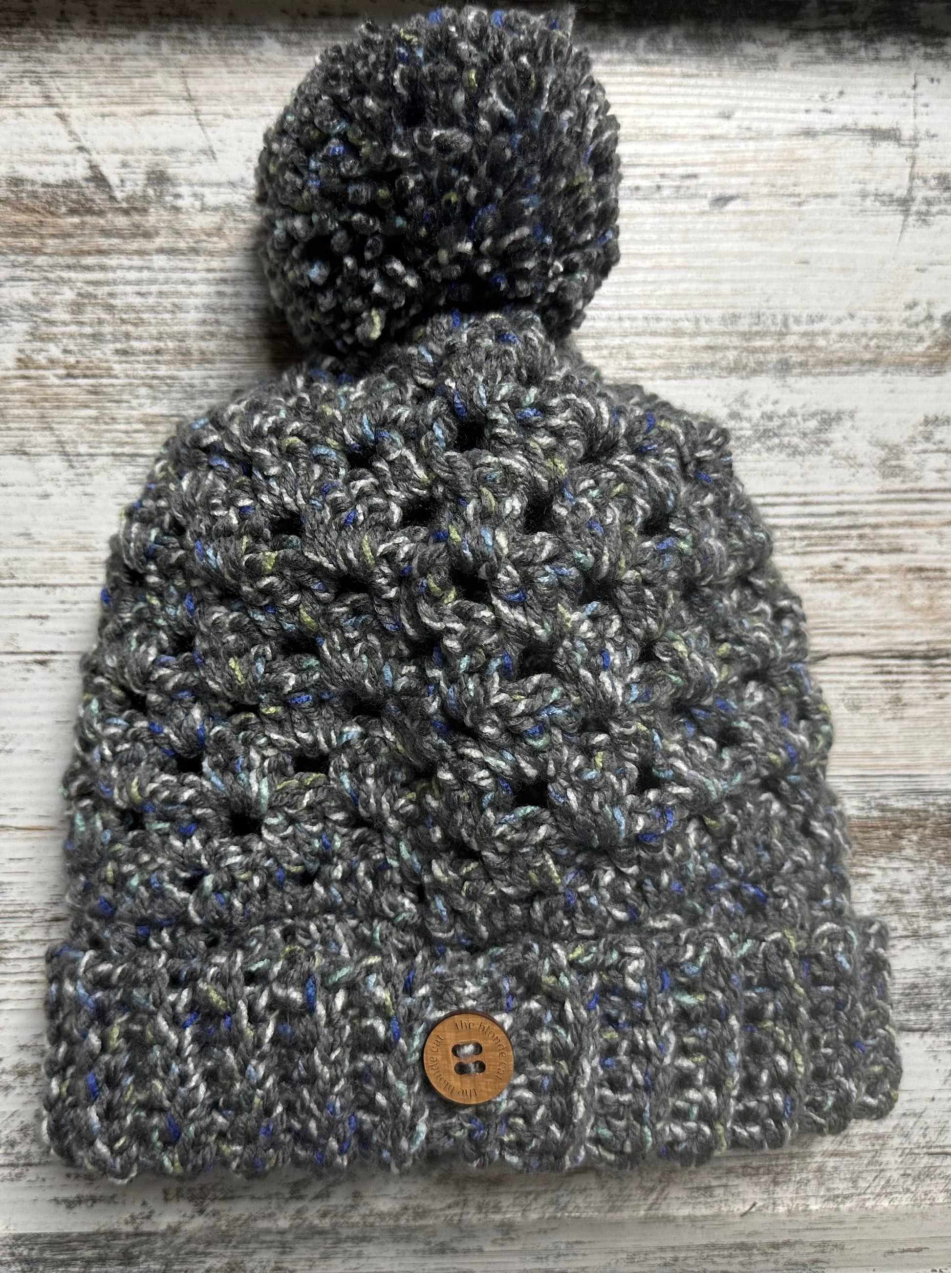 The back of the hat has a wooden button engraved with 'The Blonde Cat'.