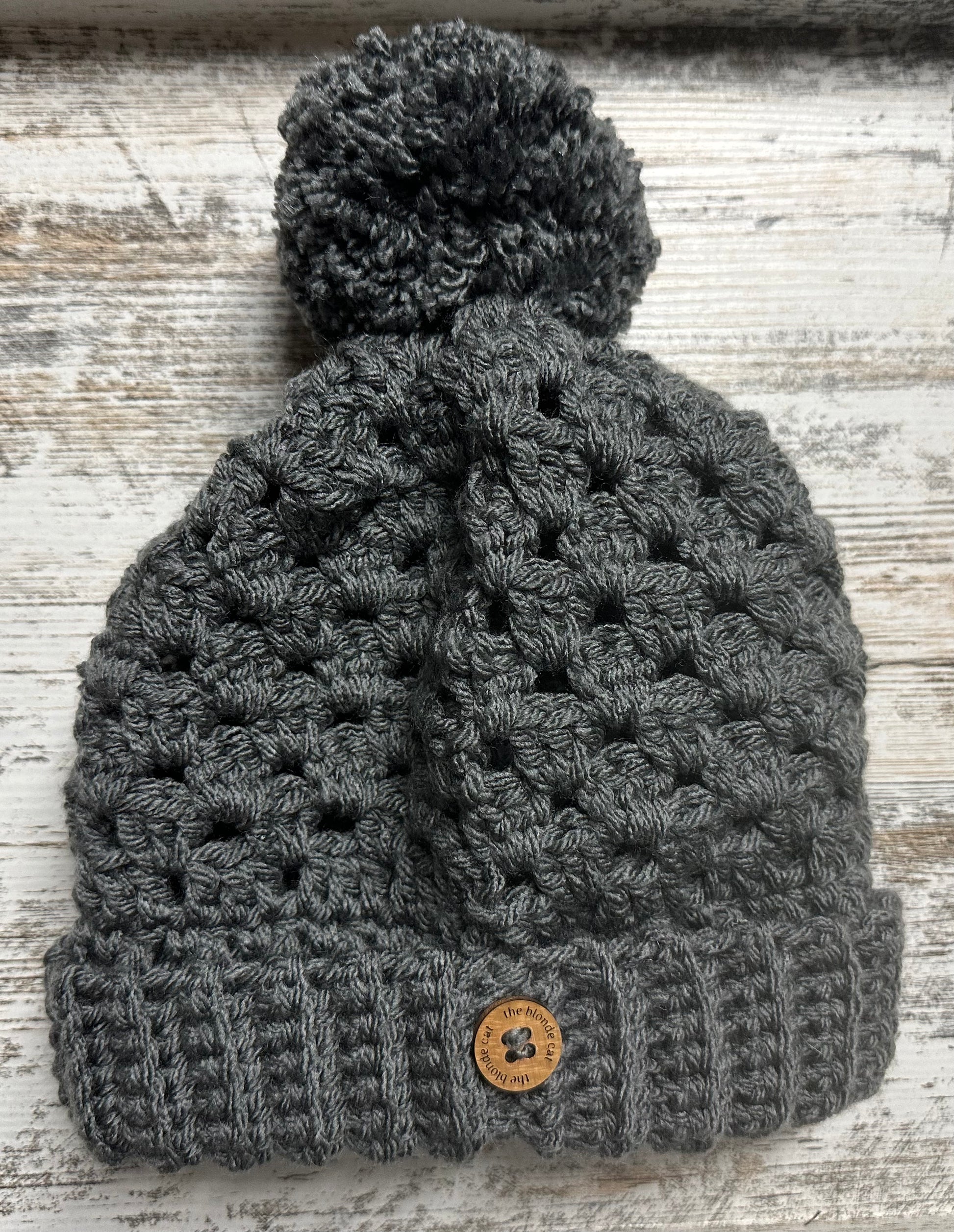 The back of the hat has a wooden button engraved with 'The Blonde Cat'.
