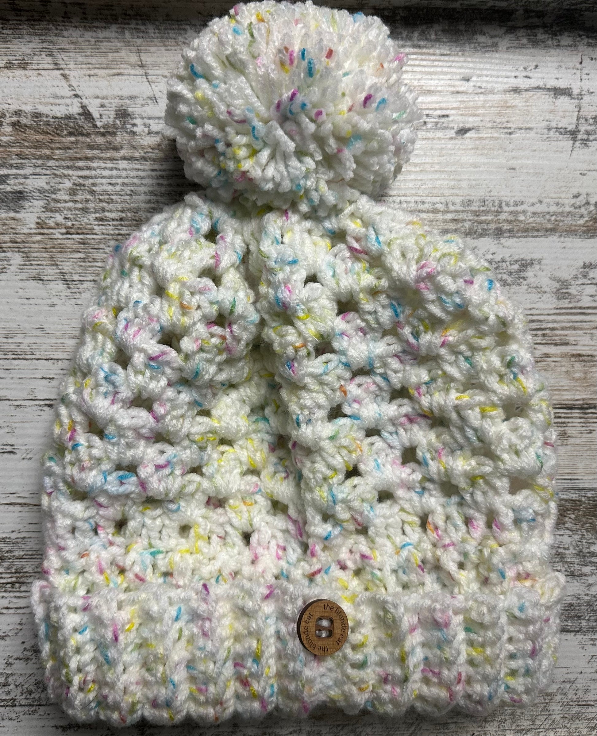 The back of the hat has a wooden button engraved with 'The Blonde Cat'.
