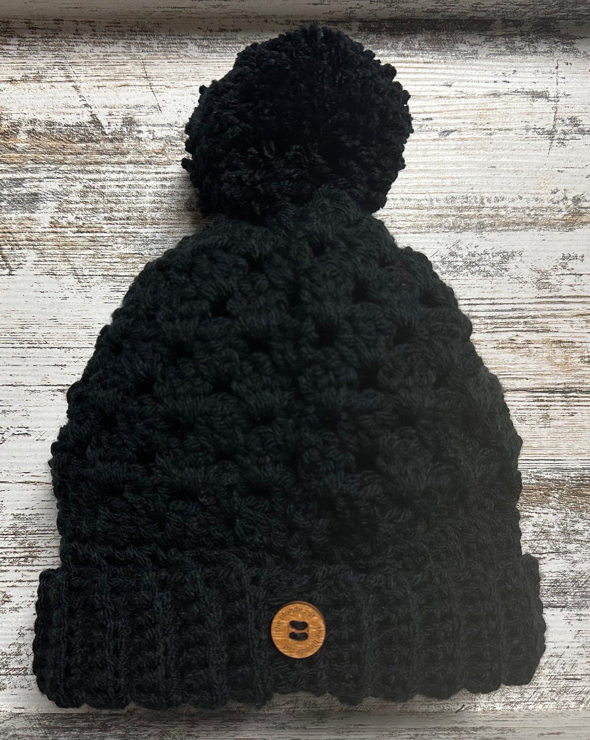 The back of the hat has a wooden button engraved with 'The Blonde Cat'.